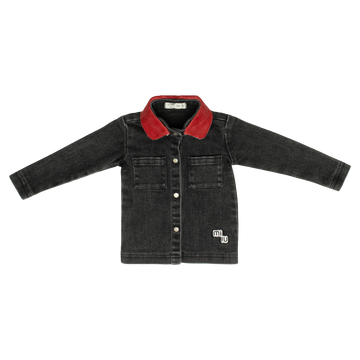 Boxy denim jacket with front pockets and reversible collar. Comes in Black and Blue.