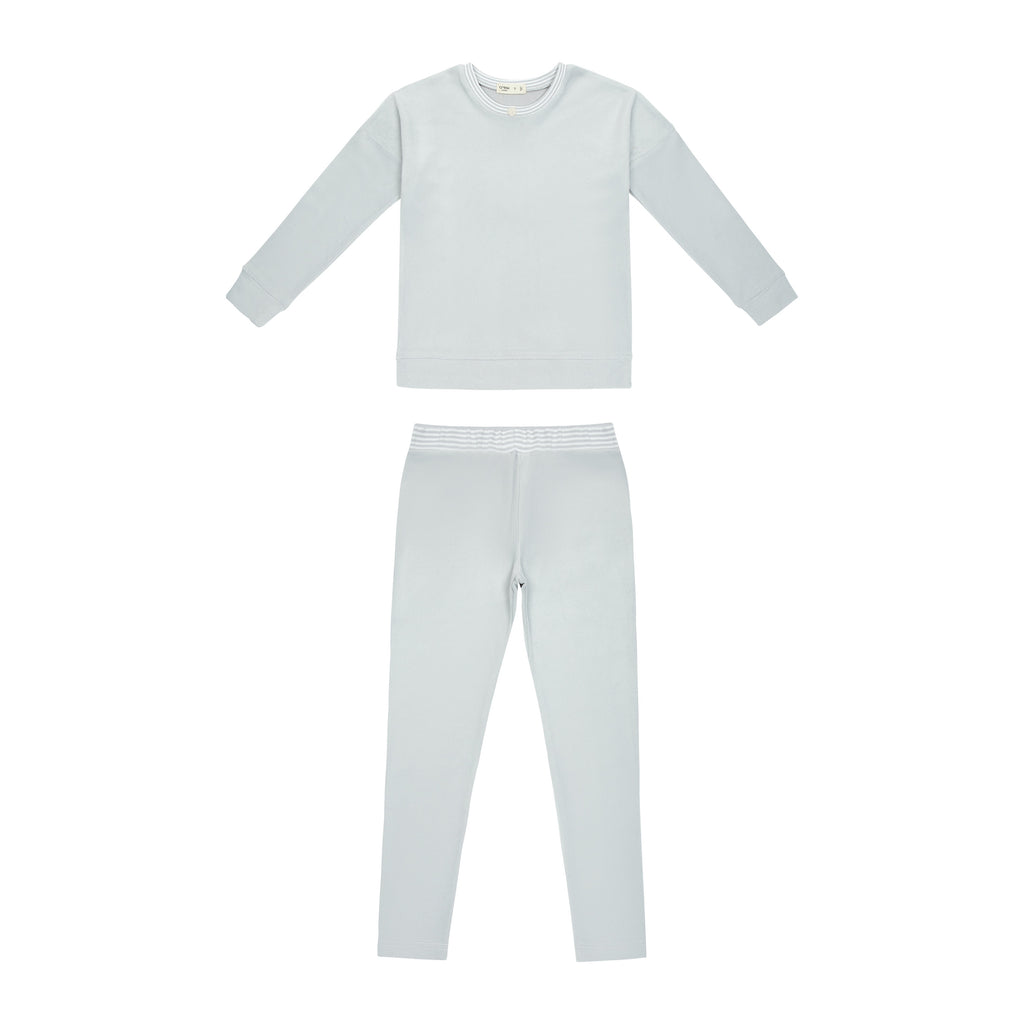 Cozy set with varsity charm and comfy fit. Comes in Grey, Lavender, Pink, and Sand.