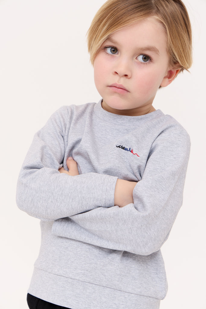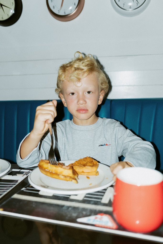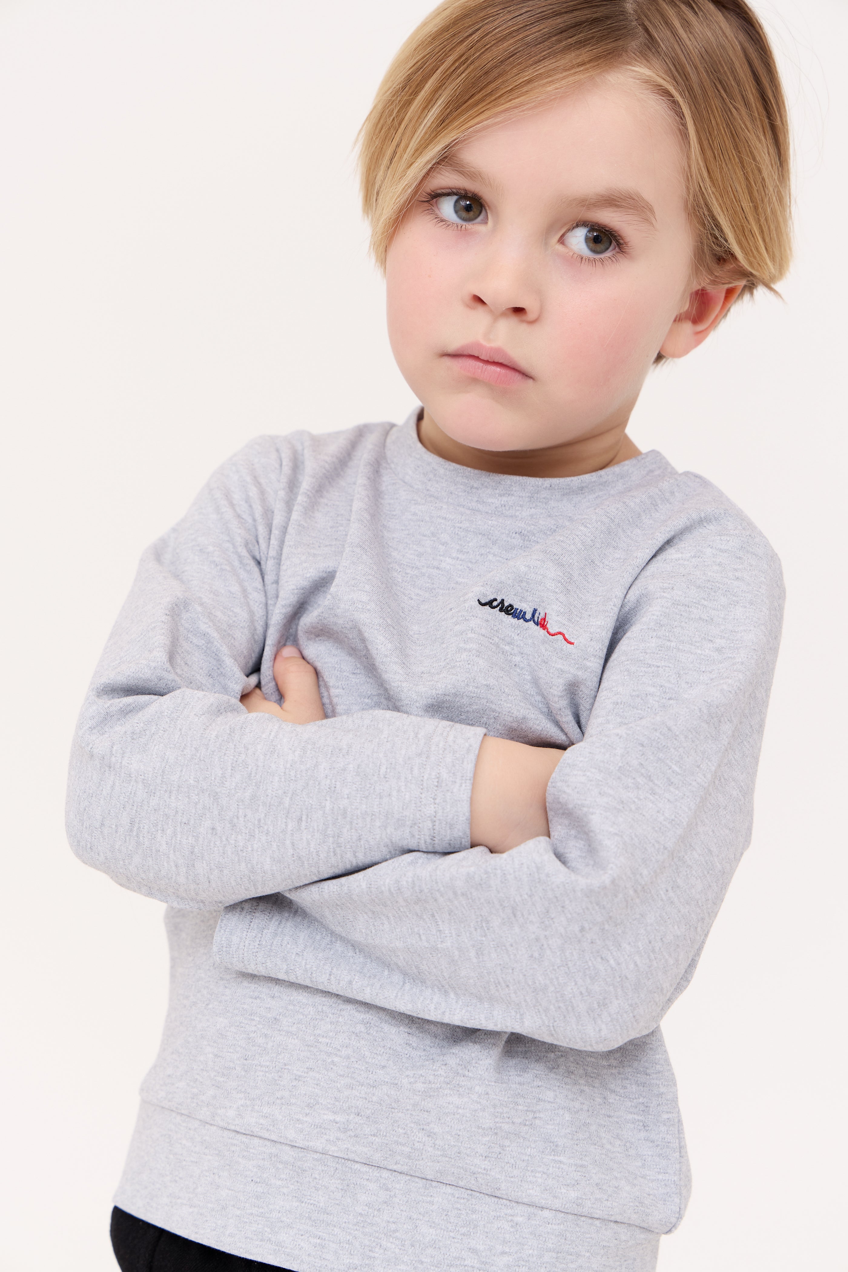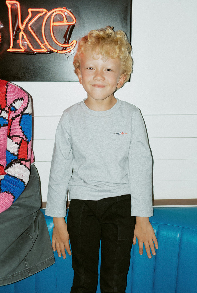 Simple long sleeve tee with small embroidered detail on the chest. Comes in Grey.
